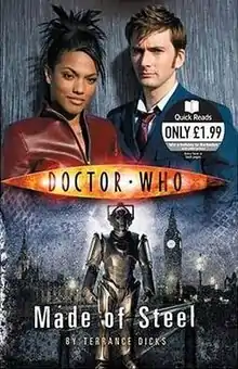 Made of Steel is a BBC Books original novella written by Terrance Dicks and based on the long-running British science fiction television series Doctor Who. It features the Tenth Doctor and Martha. This paperback is part of the Quick Reads Initiative sponsored by the UK government, to encourage literacy. It has a similar look to BBC Books' other new series adventures, except for its much shorter word count, being a paperback and not being numbered as part of the same series. To date it is the one of only five novels based upon the revived series that have not been published in hardcover: the first, I am a Dalek, was published in May 2006; the third, Revenge of the Judoon, was published in March 2008; the fourth, The Sontaran Games, was published in February 2009; and the fifth, Code of the Krillitanes, was published in March 2010. These four books are also part of the Quick Reads Initiative.