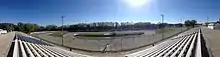 The track was a quarter mile long before it was torn up and replaced with a half mile paved oval in 1969.[5] The first winner on the half mile was Ramo Stott,[5] and the surface's first champion was Jimmy Back.[6] The track seats over 10,000 spectators.[1] There is a quarter mile track inside the half mile. A track veteran described racing the track by saying that you drive into the corners way over your head before you stand on the brakes. The more that you frighten yourself in the corners, the faster that the laps ended up.[7]