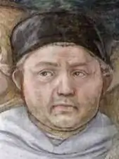 Fra Filippo was born in 1406 in Florence to a poor family where his father was a butcher. He entered a monastery with his brother at an early age. Later in his life, he was moved to a monastery in Prato, and here fell in love with a nun, Lucrezia Buti, with whom he had two children. He encountered more trouble when his patrons claimed that Fra Filippo did not fulfill his contracts. Fra Filippo's main patrons were the Medicis.[1]