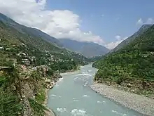 Madyan (Pashto and Urdu: مدین) is a popular hill station, located at a distance of about 55 kilometres (34 mi) from Mingora, in the Swat District of Khyber Pakhtunkhwa the Province of Pakistan. It is a tourist destination, and thousands of tourists from all over Pakistan visit this town each year especially in summer enjoying the cold breeze of Swat River. Madyan is famous for its trout fish. Agriculture and tourism related businesses like handicrafts outlets, restaurants and hotels are the main sources of income, although a small fraction is working abroad specially in gulf countries. Madyan valley is known all over the district because of its perfect weather condition. Tourists are attracted by the transparent and colorless water flows in a stream, begins from Beshigram (بشیگرام) Valley and meets with Swat River.