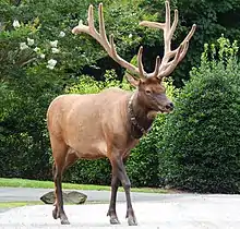 Elk were copious throughout the United States, but numbers have decreased since the mid-1800s because of over-hunting and habitat loss. In 2001, the Rocky Mountain Elk Foundation, the National Park Service and other partners joined together to restore wild elk to the Smoky Mountains in the Cataloochee Valley near Maggie Valley.[8] Most elk are found in Cataloochee Valley, which is a perfect viewing area in the southeastern section of the Great Smoky Mountains National Park. However, the elk have been known to wander out of the park and walk toward the nearby town of Maggie Valley. The best times to view elk are in the early morning and late evening.[9]