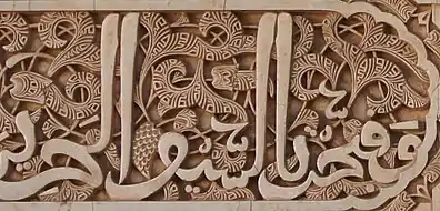 The minbar of the al-Qarawiyyin Mosque, created in 1144, was the "last major testament of Almoravid patronage," and features what is now called Maghrebi thuluth, an interpretation of Eastern thuluth and diwani traditions.[13]