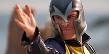 In the X-Men film series, Magneto is portrayed by Sir Ian McKellen (adult) and by Michael Fassbender (younger self).[3] His character development in the films is directly influenced by the African American human rights leader Malcolm X.[4][5] The character's pre-teen versions were portrayed by Brett Morris (in X-Men) and by Bill Milner (in X-Men: First Class). His real name is Erik Magnus Lehnsherr, which at the time was his name in the comics, and was a holocaust survivor. Though he was good friends with Charles Xavier, his objective to ensure mutant prosperity but only so long as he remains in control of it has since made them adversaries. In the X-Men films, Magneto's resistance to mental attack does not stem from his own natural powers but from his helmet which is made of a psychic shielding component. Having taken the helmet from Shaw, Magneto is rendered immune to any form of telepathy and mind control as seen in the first two film entries. His powers are much more limited when compared to his depiction in comics. Whereas he's displayed controlling magnetism to an almost unlimited degree in the comics, he is generally restricted to manipulating metal within the films. Throughout the films, despite being at odds with Xavier, Magneto displays great care towards his old friend while acknowledging his contributions to mutant kind. Magneto currently appeared in eight of the X-Men films.