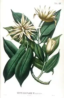 | Illustration, lithographed, hand-coloured of Aromadendron elegans Blume, the type species of genus Aromadendron. Plate VII in C.L. Blume, Flora Javae, pars 19-20 Magnoliaceae (1829) | |