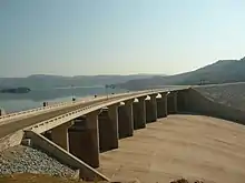 The Maguga Dam is a dam on the Komati River in Eswatini.[1] It is 115 metres (377 ft) high and is located about 12 kilometres (7.5 mi) south of Piggs Peak.[2] It was built as a joint project of the governments of South Africa and Eswatini.[1][3] As of 2005, it was the largest public works project ever undertaken by Eswatini.[4] The dam was completed in mid-2001.[3][5]