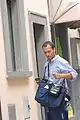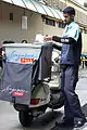A U.S. "satchel cart" (caddy cart, container cart),[upper-alpha 1][upper-alpha 2][upper-alpha 3] United Kingdom "mail trolley" (postman's cart) or the European / Asian "mail bike" is an accessory tool for letter carriers of cities to assist their normal everyday over-the-shoulder heavy mail satchel. This type of accessory is used to cut down on return trips to the postal vehicle to collect or drop off mail. In Britain, mail trolleys are controversial, and viewed as a threat by some to the viability of bicycles, which use a form of satchel bag.[upper-alpha 4] A "mail trolley" is used in the United Kingdom in addition to bikes for the "postmen".[11] [upper-alpha 5] It is also an employee safety feature because the cart is carrying the load, which could be up to 70 pounds, where a hand over-the-shoulder mail satchel for letter carriers carries up to 35 pounds of mail.[12][13]