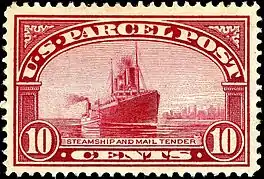 A mail ship and its tender appear on the 10 cent US Parcel Post stamp of 1912
