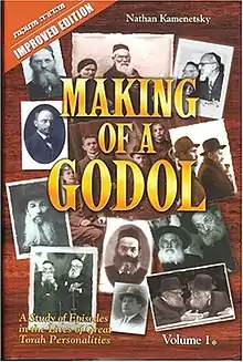 Making of a Godol: A Study of Episodes in the Lives of Great Torah Personalities is a two-volume book written and published in 2002, with an improved edition published in 2005, by Rabbi Nathan Kamenetsky (1930-2019),[1] son of Rabbi Yaakov Kamenetsky,[2] about the lives of his father[3] and of various other Jewish sages of the 19th and 20th centuries, who are revered by Orthodox (especially Haredi) Jews. The word Godol means "great [one]" in Hebrew, and refers to exceptional Talmudic scholars who are often prominent Roshei Yeshiva (heads of yeshivas).