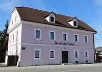 - The Russian Czar Inn (gostilna Pri Ruskem carju) stands at Vienna Street (Dunajska cesta) no. 217. It is an L-shaped masonry business and catering structure. The year 1868 is carved into the stone casing around the door facing the street. The structure preserves original vaulted rooms and many older architectural elements.[8] The building's name refers to the fact that Alexander I of Russia stopped at the site in 1821 during the Congress of Laibach, as noted on the plaque over the door.