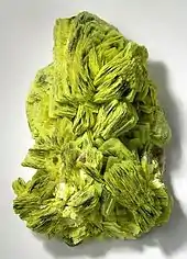 Meta-autunite, a uranium mineral, from São Pedro claim, Malacacheta. Size 4.5 x 3.0 1.7 cm.