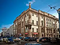 At the corner of Malaya Sadovaya Street and Nevsky Prospect (#8 Malaya Sadovaya/#56 Nevsky Prospect) is the Elisseeff Emporium, designed in the Art Nouveau style by Gabriel Baranowski and constructed 1902–1903.