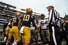 ![]() Perry (left) celebrates a touchdown with receiver Terrence Laster during the 2017 Army–Navy Game | |||||||||