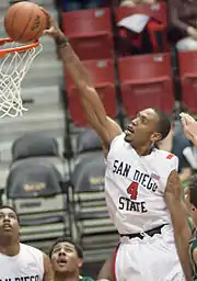 He went on to play two seasons at SDSU and twice earned All-MWC second team honors. In his senior year, he was named 2011 All-MWC defensive team after finishing second in the conference in rebounding and blocked shots.[4][5] The team advanced to the NCAA Sweet 16 that season. He ended his two-year career with the Aztecs as the school's second leading all-time shot blocker and ranked eighth all-time in both rebound average and field goal percentage.[6]