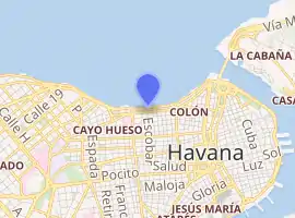 The Malecón (officially Avenida de Maceo) is a broad esplanade, roadway, and seawall that stretches for 8 km (5 miles) along the coast in Havana, Cuba,[1] from the mouth of Havana Harbor in Old Havana, along the north side of the Centro Habana neighborhood and the Vedado neighborhood, ending at the mouth of the Almendares River. New businesses are appearing on the esplanade due to economic reforms in Cuba that now allow Cubans to own private businesses.[2]