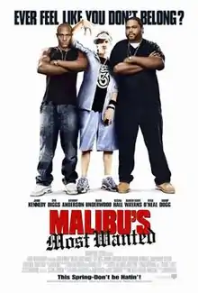 Malibu's Most Wanted is a 2003 American comedy film written by and starring Jamie Kennedy and co-starring Taye Diggs, Anthony Anderson, Blair Underwood, Regina Hall, Damien Dante Wayans, Ryan O'Neal, and Snoop Dogg. The film is written by the creators of MADtv, Fax Bahr and Adam Small, who also serve as producers. The character of "B-Rad" (a spoof of Eminem's character "B-Rabbit" in the film 8 Mile) originally appeared in Jamie Kennedy's hidden-camera show The Jamie Kennedy Experiment, but started in his stand-up routine when he was starting out.