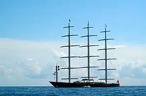 Maltese Falcon is a full-rigged ship using DynaRig technology, which was built by Perini Navi in Tuzla, İstanbul, and commissioned by her first owner, Tom Perkins. It is one of the world's most complex and largest sailing yachts at 88 m (289 ft), similar in size to the Athena and Eos. The vessel dropped her BVI flag in 2008 and was purchased by Pleon Ltd, which put her to charter use.[3]