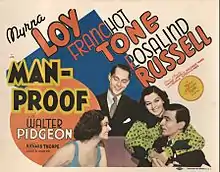 By the time shooting started, leading lady Myrna Loy was still mourning with the death of her friend and colleague Jean Harlow.[4] Nevertheless, she recalled that she experienced production of Man-Proof as joyful, due to her positive experience with co-stars Pidgeon and Rosalind Russell.[4] Loy and Russell became friends during shooting,[4] though they had been frequent competitors for movie roles in the past.[5]