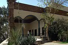 The palace is famous for its beautiful decorative style and wooden architecture design. Its walls and ceilings are garnished with plaster and colored greenery ornaments and bird figures. The floors of the two main halls are covered with marble and parquet. The influence of the Ottoman Rococo is quite notable as well as a Pharonic impact at the external entry-front of the palace.[2]