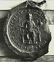 Manfred (Sicilian: Manfredi di Sicilia; 1232 – 26 February 1266) was the last King of Sicily from the Hohenstaufen dynasty, reigning from 1258 until his death. The natural son of the Holy Roman Emperor Frederick II,[1] Manfred became regent over the kingdom of Sicily on behalf of his nephew Conradin in 1254. As regent he subdued rebellions in the kingdom, until in 1258 he usurped Conradin's rule. After an initial attempt to appease pope Innocent IV he took up the ongoing conflict between the Hohenstaufens and the papacy through combat and political alliances. He defeated the papal army at Foggia on 2 December 1254. Excommunicated by three successive popes, Manfred was the target of a Crusade (1255–66)[2] called first by Pope Alexander IV and then by Urban IV. Nothing came of Alexander's call, but Urban enlisted the aid of Charles of Anjou in overthrowing Manfred. Manfred was killed during his defeat by Charles at the Battle of Benevento, and Charles assumed kingship of Sicily.