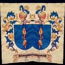 The Mangubat surname were members of the Spanish nobility class and Filipino native royalty class with a Spanish heraldry of Azure shield, with a gold pike or pica, put on stick[lower-alpha 1] and positioned vertically at the center of the shield.[6]