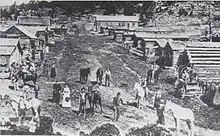 There were about 300 men who mined the Laugh-a-lot, Little Tipsy, and Katy's Pet mines, but the town never realized the boom predicted by The Denver Post in 1897.[1] A radio soap opera, Our Gal Sunday, and the book A Lady from Colorado, later adapted into an opera by Robert Ward, were based upon the life of Irish immigrant, Katie Lawder, who was orphaned at the age of 12 and lived in Colorado beginning at age 18. In 1888, she married Cecil Ernest Moon, an Englishman and Oxford graduate who later attained a title and a fortune. Katie took her cowgirl clothing and western frontier ways with her on trips with her husband to England. Ultimately she fell out of favor with Cecil and his family and the couple was divorced. She then lived entirely in Colorado and wished to continue to be called Lady Cecil Moon. She bought a ranch by 1901 for US$2,500 (equivalent to $76,830 in 2019).[1][11]