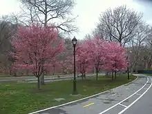 At the downtown end, the Battery Bikeway connects the Hudson and East River Greenways.[4] It opened in 2015 after renovation work on the South Ferry/Whitehall Street station.[5] The connection is a biker crossing right of way across Battery Place to the foot of the Hudson River Greenway.[4] At the Battery's southeast end, the bikeway continues as the East River Greenway, which runs next to FDR Drive.[6]