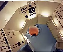 The Aerospace Corporation was given responsibility for general systems engineering and technical direction.[49] Douglas selected five major subcontractors: Hamilton-Standard for environmental control and life support; Collins Radio for the communications; Honeywell for the attitude control; Pratt & Whitney for the electrical power; and IBM for data management. Aerospace and the MOL SPO concurred with all but the last, noting that while IBM had a technically superior bid to Univac, its estimated cost was $32 million (equivalent to $196 million in 2019) compared to Univac's $16.8 million (equivalent to $103 million in 2019). Douglas decided to let study contracts to both firms.[48]