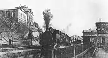 The connection was opened on 15 October 1879. It amounted to an extension of the Würzbach Railway (Schwarzenacker–St. Ingbert), which had been completed in 1866 and 1867 and branched off the Homburg–Zweibrücken railway. Its main purpose was to provide a connection for coal trains from the Saarbrücken area to the South Palatinate Railway (Südpfalzstrecke; Landau–Zweibrücken), which opened in 1875, to avoid the detour via Neunkirchen and Bexbach and a reversal in Homburg station. In this way the route used for transport of coal was shortened and the costs were reduced.[19] The same thing applied to products from industrial towns such as Dillingen and Saarlouis, as well as from neighbouring Lorraine (then German Lothringen).[20] In addition, this resulted in a shorter connection between Homburg and Saarbrücken than the previous route via Bexbach and Neunkirchen.[21]