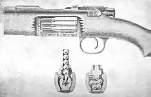 | Cartridge | 6.5×54mm Mannlicher–Schönauer (military and Model 1903) 8×56mm Mannlicher–Schönauer (Model 1908) 9×56mm Mannlicher–Schönauer (Model 1905) 9.5×57mm Mannlicher–Schönauer (Model 1910) 30-06 Springfield, .243 Win and .270 Win (Model 72) |