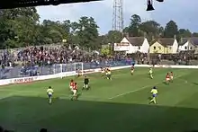 The main seating stand was the Beech Road stand (on the west), the 'home' terracing was the London Road stand (south), the 'away' terracing was Cuckoo Lane (north) and on the fourth side was the Osler Road stand (east).[2] In 1966, with the demolition of Sandfield College, a new entrance to the ground was created onto London Road.[3]
