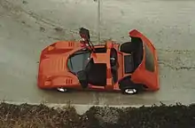 The Manta Mirage was an American mid-engined vehicle produced by Manta Cars. The Mirage, originally referred to as just the "Manta", or the "Manta Can-Am", was a lightweight, road-legal racing car. The Mirage's steel space frame chassis was fitted with a high-output V8 engine and four-speed transaxle. Most Mirages were equipped with 327 cu in (5.36 l) or 350 cu in (5.7 l) Chevrolet small-block V8 engines, and several vehicles were fitted with 454 cu in (7.44 l) V8s sourced from Chevrolet, as well as 460 cu in (7.5 l) V8 engines sourced from Ford. The original Mirage design mated the Chevy V8 to a Corvair transaxle via a Kelmark adapter and remote shifter. The bodywork was all hand-laid fiberglass, colored in a range of gel-coat colors. Gull-wing doors were fitted to a removable top section, while the doors flip forward for entry. With curb weights as light as 1,900 lb (860 kg), the cars could be built by the factory or their owners to be extremely fast.