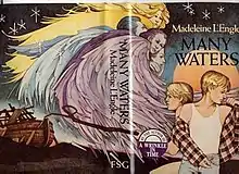 Many Waters is an anomaly among the books of the Time Quintet.[4] Meg and Charles Wallace Murry, the protagonists of the other three books, only appear on the last two pages of this one, while Sandy and Dennys, usually minor characters, are fully developed. Written after A Swiftly Tilting Planet, it nevertheless takes place about five years before that book, and about five years after A Wrinkle in Time. If one reads the books in the order of internal chronology, Many Waters thus interrupts the saga of Meg and Charles Wallace for a side trip with the "ordinary" members of the Murry family. Since the story was not written before Planet was published, the latter book does not fully take into account the twins' expanded understanding of the world beyond the everyday, instead showing some continued skepticism on their part. However, this aspect of their character is less extreme than in earlier books. For the twins, being immersed in Noah's world "stretches their sense of reality".[4] Sandy and Dennys appear to retain this change in attitude as adults, particularly in A House Like a Lotus, in which Sandy acts as a mentor to his eldest niece, Polly O'Keefe. In the previous book in the series, A Wind in the Door, Meg is informed that Sandy and Dennys will become "Teachers", a metaphoric role that they appear to play as adults because of their experiences in Many Waters. However, An Acceptable Time, the fifth book in the so-called Time Quintet (the Time Quartet plus the final novel about Polly), does not include the twins as either skeptics or teachers.