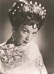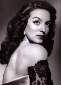 María de los Ángeles Félix Güereña, known as María Félix (Spanish: [maˈɾi.a ˈfeliks]; 8 April 1914 – 8 April 2002), was a Mexican film actress and singer. Along with Pedro Armendáriz and Dolores del Río, she was one of the most successful figures of Latin American cinema in the 1940s and 1950s. Considered one of the most beautiful actresses of Mexican cinema, her taste for the finesse and strong personality garnered her the title of diva early in her career.[3] She was known as La Doña, a name derived from her character in the film Doña Bárbara (1943), and María Bonita, thanks to the anthem composed exclusively for her, as a wedding gift by her second husband, the Mexican composer Agustín Lara. She completed a film career that included 47 films made in Mexico, Spain, France, Italy and Argentina.[4]