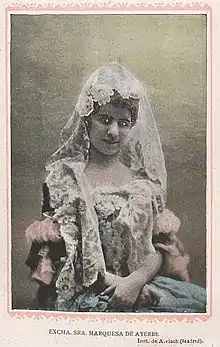 Born in the Castle of Soutomaior, province of Pontevedra, on 14 August 1875.[2] She inherited goods from her uncles the marquises de la Vega y Armijo.[3] She married Juan Jordán de Urríes, marquis of Ayerbe in 1896.[2] In 1904 she published El Castillo del Marqués de Mos en Sotomayor.[4] Vinyals, became an acquaintance of Emilia Pardo Bazán, María Barbeito and Carmen de Burgos,[4] joined the Ateneo de Madrid in 1906.[5] She founded the Ibero-American Centre for Female Popular Culture, an institution looking to teach girls unable to receive other kind of education.[6] In 1909, following the decease of the marquis of Ayerbe, Vinyals married the Cuban physician Enrique Lluria.[7] A member of the Spanish Socialist Workers' Party (PSOE),[8] Vinyals was affiliated to the Female Socialist Aggrupation of Madrid.[9] She wrote several columns in journals such as El Imparcial, El Fígaro, or Blanco y Negro.[10] She dealt with the importance of female education as tool for social regeneration,[8] she also vowed for the complementarity of man and woman in public management.[11]