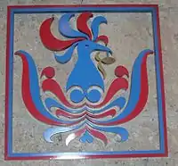 Sarimanok, Papanoka "Mra" or "Mara patik" is a legendary bird of the Maranao that is a ubiquitous symbol of their art. It is depicted as a Hoodhud (Arabic) with colorful wings and feathered tail, holding a fish on its beak or talons. The head of Sarimanok is like the head of a Hoopoe (Balalatoc in maranaw) and is profusely decorated with scroll, leaf and spiral motifs (okir). It is a symbol of good fortune.[10][11]