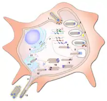 Niemann–Pick C1 (NPC1) cholesterol transporter protein appears to be essential for infection with both Ebola and Marburg virus. Two independent studies reported in the same issue of Nature showed that Ebola virus cell entry and replication requires NPC1.[18][19] When cells from patients lacking NPC1 were exposed to Ebola virus in the laboratory, the cells survived and appeared immune to the virus, further indicating that Ebola relies on NPC1 to enter cells. This might imply that genetic mutations in the NPC1 gene in humans could make some people resistant to one of the deadliest known viruses affecting humans. The same studies described similar results with Marburg virus, showing that it also needs NPC1 to enter cells.[18][19] Furthermore, NPC1 was shown to be critical to filovirus entry because it mediates infection by binding directly to the viral envelope glycoprotein[19] and that the second lysosomal domain of NPC1 mediates this binding.[20]