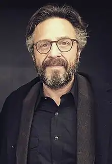 His only major film credit for years was a small part credited as "angry promoter" in the 2000 Cameron Crowe film Almost Famous, in which he is first seen fighting with Noah Taylor's character and then yelling at and chasing after the main characters as they drive away on a bus, at which point he yells, "Lock the gates!" which is now used in the intro to his podcasts.[46] He was also featured at the Luna Lounge in the 1997 mockumentary Who's the Caboose? starring Sarah Silverman and Sam Seder.[47] In 2019, Maron starred in a Lynn Shelton-directed comedy film titled Sword of Trust.[48] In 2020, Maron played publicist Ron Oberman opposite Johnny Flynn's young David Bowie in the movie Stardust.[49]
