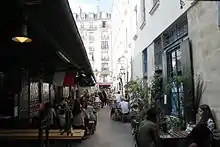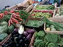 The name in English translates as "Market of the Red Children", and refers to the nearby "Hospice des Enfants-Rouges" where orphans were clothed in red (the color of charity).[2] The market offers fresh fruits, vegetables, flowers and bread, as well as restaurants where shoppers can buy cooked meals.[3]