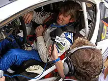 Marcus Ulf Johan Grönholm (born February 5, 1968) is a Finnish former rally and rallycross driver, being part of a family of the Swedish-speaking population of Finland lineage. His son, Niclas Grönholm, is an upcoming FIA World Rallycross Championship driver. Grönholm's nicknames are either "Bosse" (mainly in his native Finland and the Scandinavian countries) or "Magic Marcus". Driving for Peugeot, he won the World Rally Championship in 2000 and 2002. After Peugeot withdrew from the World Rally Championship, Grönholm moved to Ford for the 2006 season and placed second in the drivers' world championship, losing the title to Sébastien Loeb by one point. The next year he again placed second, four points behind Loeb. He and his co-driver Timo Rautiainen retired from rallying after the 2007 season but returned to the championship in 2009 driving a private Subaru for a short period of time, and in the 2019 World Rally Championship where he competed in a Toyota Gazoo Racing WRT-maintained Toyota Yaris under the GRX Team banner.[1]