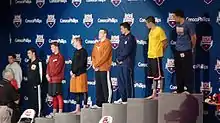 USA Swimming decided to allow hand signals at the U.S. Olympic trials, thanks to Titus and his fan base, to accommodate deaf swimmers. Titus, upon hearing USA Swimming would not allow hand signals to comply with international rules, talked to US Swimming through an attorney.[13] When this didn't work, Titus set up a Facebook page to get fans to e-mail USA swimming officials. Before, they only used strobe lights, which is good for deaf and hearing-impaired swimmers to know when to start the race, but not any other cue. Titus took this as a form of discrimination against deaf and hearing-impaired swimmers. While other swimming organizations used hand signals to accommodate those who are hearing-impaired, USA Swimming did not.[14] Titus, backed up by U.S. Deaf Swimming and USA Deaf Sports Federation, finally got USA Swimming to reverse this decision in July, 2012 .[3][15]