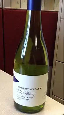 Margaret River is the major geographical indication wine region in southwest Western Australia, with 5,017 hectares under vine and 215 wineries as at 2012.[1] Margaret River wine region is made up predominantly of boutique size wine producers; although winery operations range from the smallest crushing 3.5 tonne per year to the largest around 7000 tonne. The climate of Margaret River is more strongly maritime-influenced than any other major Australian region. It has the lowest mean annual temperature range, of only 7.6 °C, and as well as the most marked Mediterranean climate in terms of rainfall, with only 200 millimetres of the annual 1160 millimetres falling between October and April. The low diurnal and seasonal temperature range means an unusually even accumulation of warmth. Overall the climate is similar to that of Bordeaux in a dry vintage.[3][4] Although the region produces just three percent of total Australian grape production, it produces over 20 percent of Australia's premium wine market.[5][6] The principal grape varieties are fairly evenly split between red and white; Cabernet Sauvignon, Chardonnay, Sauvignon blanc, Sémillon, Shiraz, Merlot, Chenin blanc and Verdelho.[3][7]