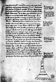The Inquisitor spoke of her as a pseudo-mulier, "fake woman", and described the Mirror as 'filled with errors and heresies.'[16] A record of the trial was appended to the chronicle begun by Guillaume de Nangis; despite the negative view taken towards Marguerite by Nangis, the chronicle reports that the crowd was moved to tears by the calmness of how she faced her end.[17]