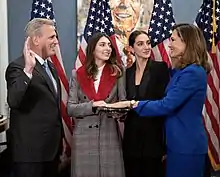 Maria Elvira Salazar (born November 1, 1961) is an American television journalist and Republican politician serving as the U.S. Representative for Florida's 27th congressional district. She is currently one of the Republican assistant whips under Steve Scalise.[1] Prior to entering politics, she worked for the Spanish-language network Telemundo for three decades after serving as a news anchor for Miami-based Mega TV. She has also worked for CNN Español and Univision. She was the Republican nominee for Congress in 2018, losing to Donna Shalala. Salazar won the 2020 rematch, receiving 51.4% to Shalala's 48.6%. She was scheduled to be sworn in to the 117th United States Congress on January 3, 2021 with the rest of her freshmen colleagues, but she was diagnosed with COVID-19 shortly before the start of the term, and as a result was not sworn in until January 12.[2]
