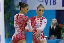 ![]() Mariam Gigolashvili and Nino Diasamidze at the 2014 Acrobatic Gymnastics World Championships | |