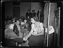 At Eleanor Roosevelt's instigation,[34] President Roosevelt and Walter White, then-executive secretary of the NAACP, and Anderson's manager, Sol Hurok, persuaded Secretary of the Interior Harold L. Ickes to arrange an open-air concert on the steps of the Lincoln Memorial.[30] The concert was performed on Easter Sunday, April 9. Anderson was accompanied, as usual, by Vehanen. They began the performance with a dignified and stirring rendition of "My Country, 'Tis of Thee." The event attracted a crowd of more than 75,000 in addition to a national radio audience of millions.[35]