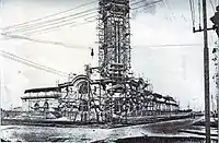 The building was projected by architects Enrique Chanourdie and Mr. Micheletti, and carried out by construction company Falcone. Works began in December 1927 with the intention to build a railway station for the Province of Santa Fe Railway on the corner of Santa Fe and Cafferata streets of Rosario. The building was finished in 1929.[1]