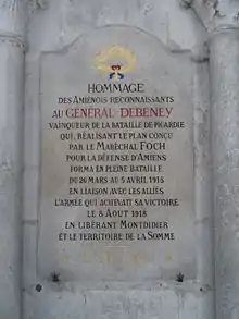 Marie Eugène Debeney (5 May 1864[1] – 6 November 1943[2]) was a French Army general. He commanded a corps at the Battle of the Somme then, in the second half of 1917, served as chief of staff to the French Commander-in-Chief Philippe Pétain. He then commanded the First Army which, fighting alongside British Empire forces, played an important role in the mobile fighting of 1918, including at the Battle of Amiens and the Storming of the Hindenburg Line.