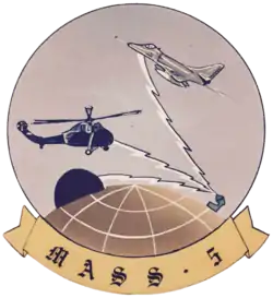 MASS-5 was commissioned on 15 August 1966 at MCAS El Toro with the majority of its original members coming from the ranks of Marine Air Support Squadron 3 (MASS-3).[1] MASS-5 supported training operations for west coast United States Marine Corps exercises while MASS-3 was deployed to the Republic of Vietnam supporting combat operations. The first exercise that MASS-5 supported was "Exercise Snowdrift" in January 1967.[2] During the time they were active they supported numerous exercises at Marine Corps Base Camp Pendleton, Marine Corps Air Ground Combat Center Twentynine Palms, MCAS El Toro and the Chocolate Mountain Aerial Gunnery Range. As regular forces return from Vietnam there was not a need for two Marine Air Support Squadrons on the west coast. MASS-5 was decommissioned in 1969 at ceremony conducted at MCAS El Toro. Remaining Marines from the unit were used to form Sub-Unit 1 of Headquarters and Headquarters Squadron 38 (H&HS-38).[3]