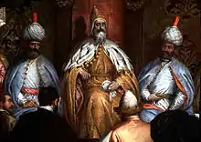Marino Grimani (1 July 1532, in Venice – 25 December 1605, in Venice) was the 89th Doge of Venice, reigning from 26 April 1595 until his death. Grimani's reign as doge was principally remembered for two reasons: