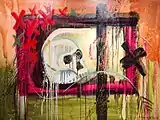 The themes and subjects explored in Torroella’s work include alienation, violence, beauty, sorrow, mysticism, spirituality, and death.[2][1] He utilizes creative analysis and social criticism as a means of expression.[1] Examples include his exploration of the concept of justice as well as the tension between superficial aesthetic principles and deeper moral principles.[2] These themes are represented abstractly in Torroella's work through layered symbolism.[2]